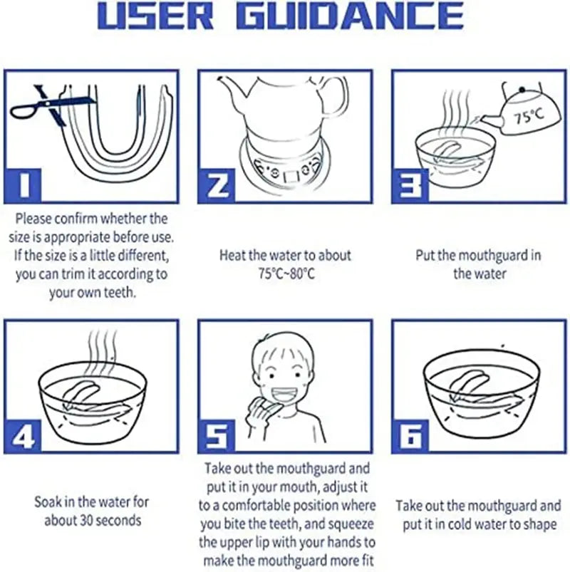 High density structure, firm and soft heating snap-in design, more fit users' teeth shape and the mouth guard can reach the rear molars, to provide complete protection.